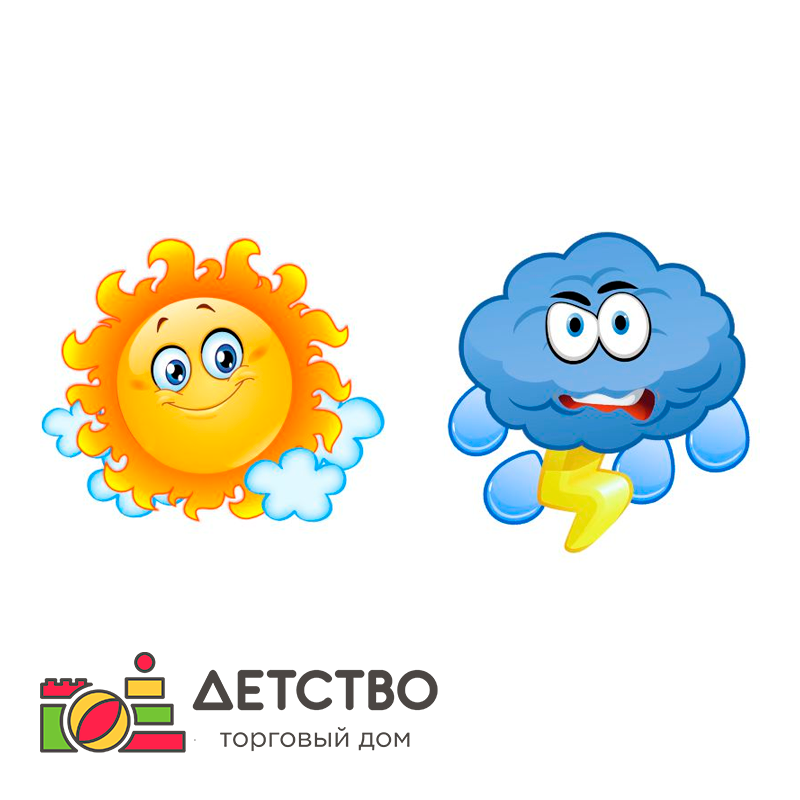 Комплект фигурных элементов для оформления детской площадки и группы Солнышко и Тучка также предназначен для размещения над выставкой детских работ, расположенных на леске, закреплёнными кнопками или др. способом для детского сада.Материалы: основа - пластик ПВХ 3 мм, плёнка с фотопечатью 1440 dpi, защитная ламинация