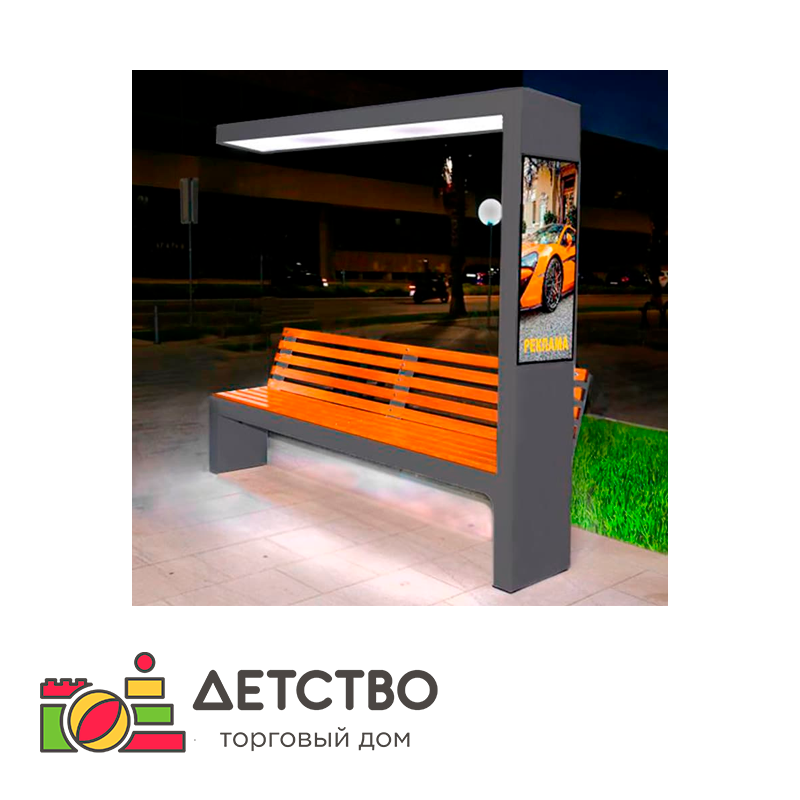 Умная интел-скамья Ника-6 — отличный выбор для улицы на территории учреждений для детей. Яркая подсветка под крышей не оставит Вас и детей в темноте, подсвечивая скамью и территорию вокруг. Сбоку расположен экран, на котором возможно размещать рекламу, объявления или новостную информацию. Помимо этого скамья имеет возможность подзарядки гаджетов — Вы не останетесь без связи. Полимерная доска на сиденье и спинке прочная и долговечная, выдерживает многолетнюю активную эксплуатацию, что является особенно важным при выборе уличной мебели. Несмотря на свой богатый функционал, скамья достаточно компактная, не занимает много места на улице, но обеспечивает все необходимые нужды современного человека. Обратите внимание, что для данной скамьи обязательно подключение к электросетям!Характеристики: