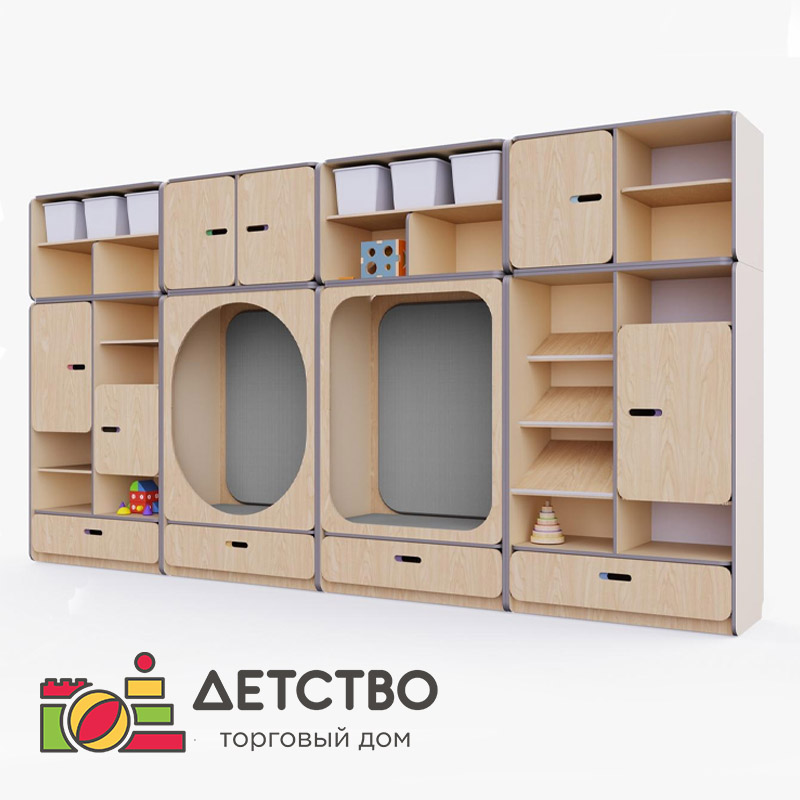 Детская стенка с местом для хранения и зонами отдыха для хранения игровые для детского сада
