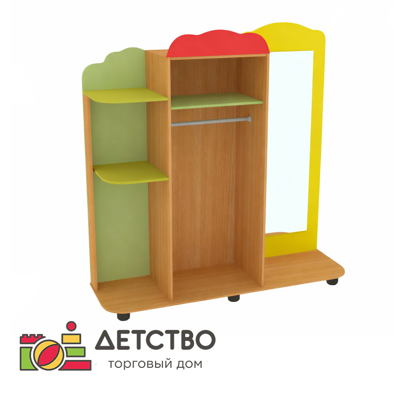 Преимущества уголка ряжений:- Интерактивный дизайн: Уголок оформлен в привлекательных цветах и включает в себя зеркала, вешалки и полки для хранения костюмов, что создает атмосферу настоящего театра и вдохновляет детей на творчество.