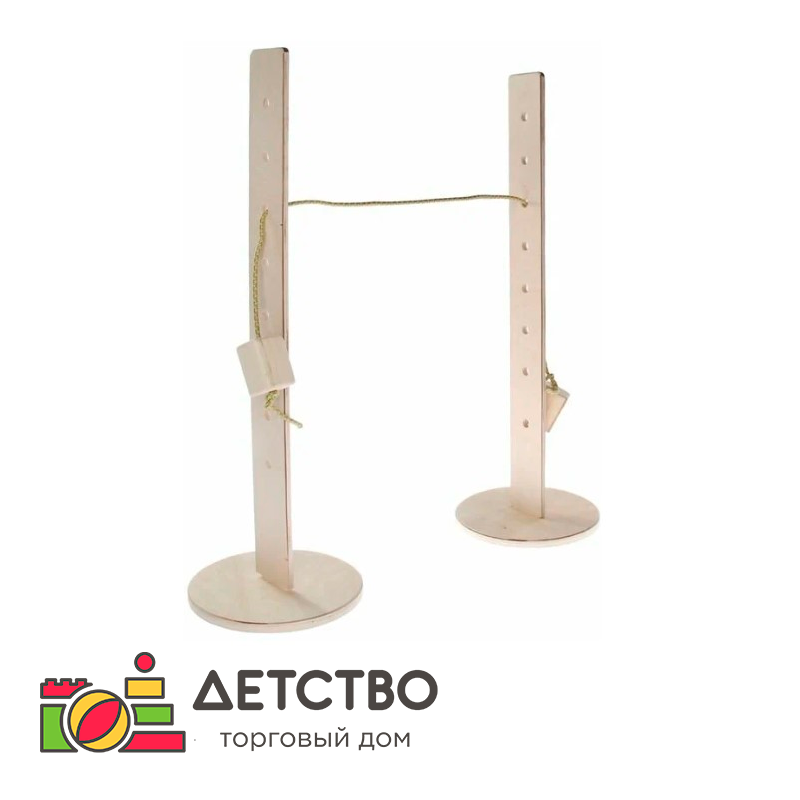 Стойка для прыжков высотой 60 сантиметров идеально подойдёт для дошкольников. С помощью неё они смогут выполнять прыжки в высоту. В комплект входят две вертикальные стойки из многослойной фанеры толщиной 18 мм, покрытые безопасным лаком на водной основе, а также шнур длиной 3 метра с переставляемыми грузиками на концах, который используется вместо планки и является намного безопаснее для детей. На каждой стойке есть по 5 отверстий для установки шнура, то есть шнур можно установить на 5 уровней высоты.Комплектация: стойка — 2 шт., шнур — 1 шт.