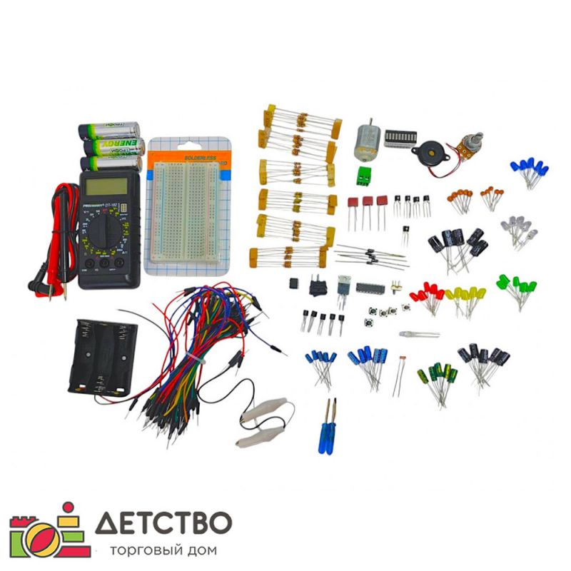 - руководство пользователя (количество уроков 30) содержит теоретическую часть и практические задания, предназначенные для закрепления теории. Помимо этого, процесс обучения с помощью набора предусматривает сборку несложных электронных устройств, требующую применения всех полученных знаний. Каждый шаг подробно разъяснен и проиллюстрирован, все схемы дополнены комментариями. Руководство и компоненты, входящие в состав набора, предусматривают прохождение 15 практических уроков и сборку 15 проектов: 1 шт