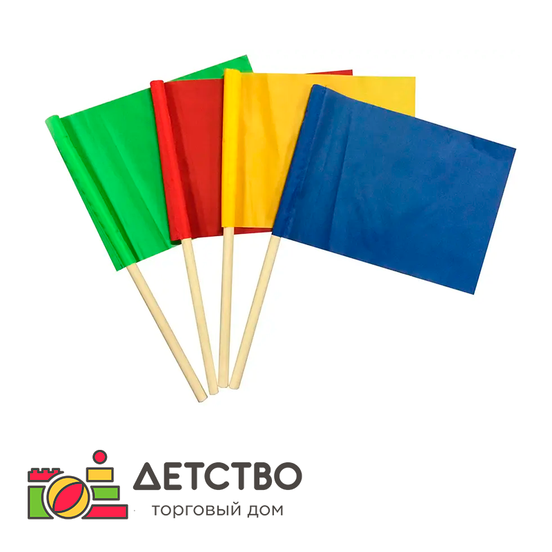 Большой цветной флажок. Представлен в 4-х расцветках: красный, синий, жёлтый, зелёный. Тканевая часть надёжно крепится к деревянной ножке. Размеры: длина ножки — 30 см, длина тканевой части — 21 см, ширина — 15 см.Внимание! Цена указана за 1 штуку. Желаемый цвет уточняйте в комментарии или у менеджера при оформлении заказа.