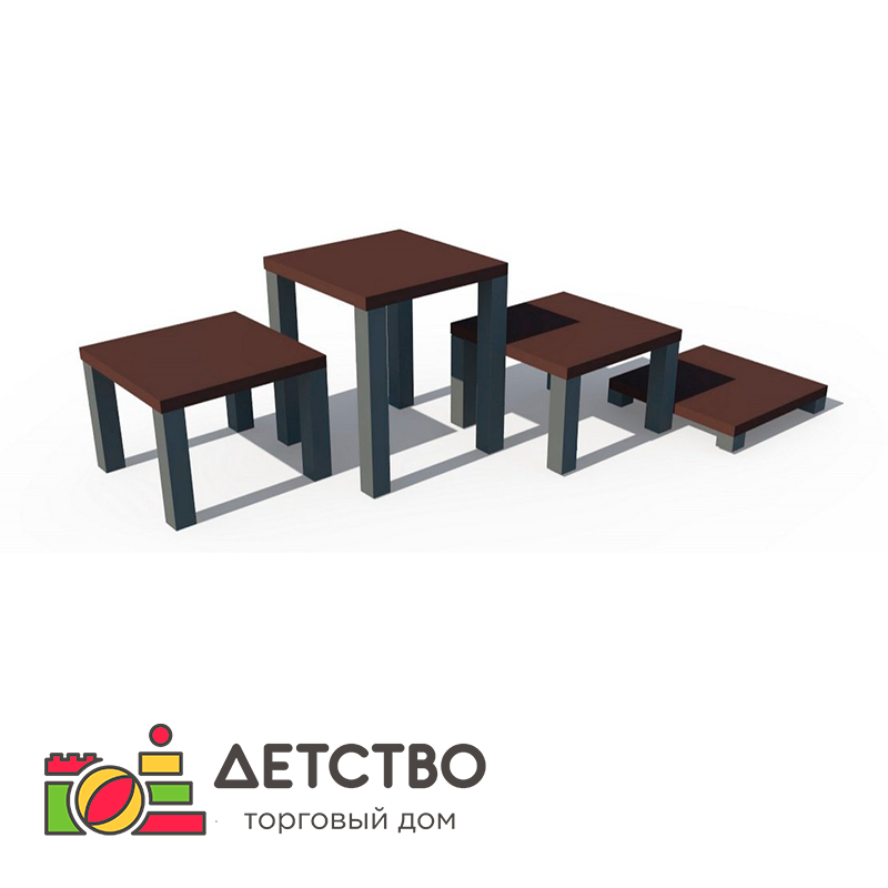 Игровая форма в виде ступенек предназначена для размещения на уличной игровой площадке в детском саду. Устанавливается методом бетонирования. Изготовлена из берёзовой влагостойкой фанеры ФСФ 2/2, стали марки Ст 3 и клеёного бруса. Подходит для детей 4—6 лет и 7—10 лет. Произведена в России. Сертифицирована по ГОСТу.Материалы: дерево, металл.