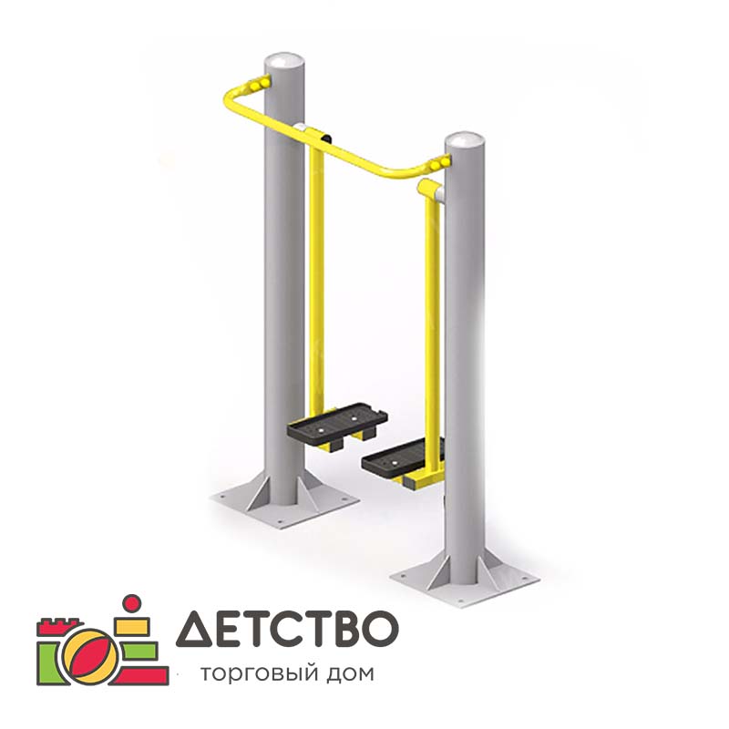 Тренажёр предназначен для развития мышц ног (бёдер, ягодиц, голени) и поясницы. Упражнение на этом тренажёре относится к аэробным, напоминают ходьбу, производит общеукрепляющее действие на организм.Спортивный тренажер состоит из 2-х стоек, 2-х качающихся опор и поручня. Конструкция безопасна и долговечна.