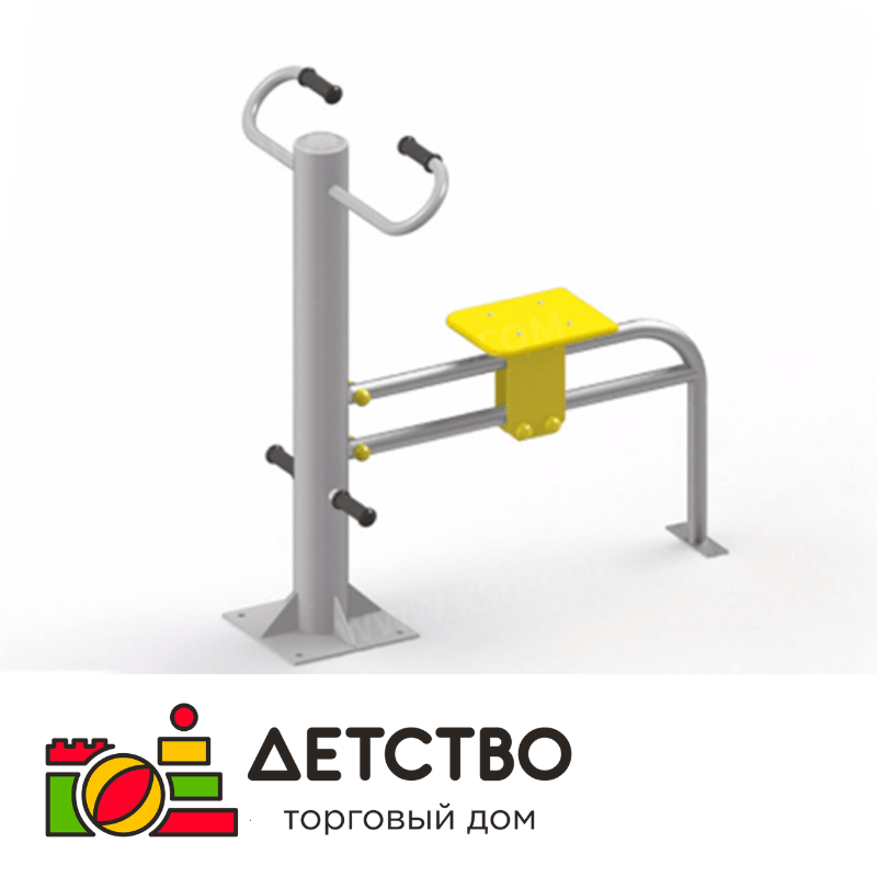 Спортивный тренажер состоит из стойки, посадочного места, рукояток и упоров для ног. Возрастная группа: от 14 лет. Конструкция изделия безопасная и долговечна, а материалы качественные.
