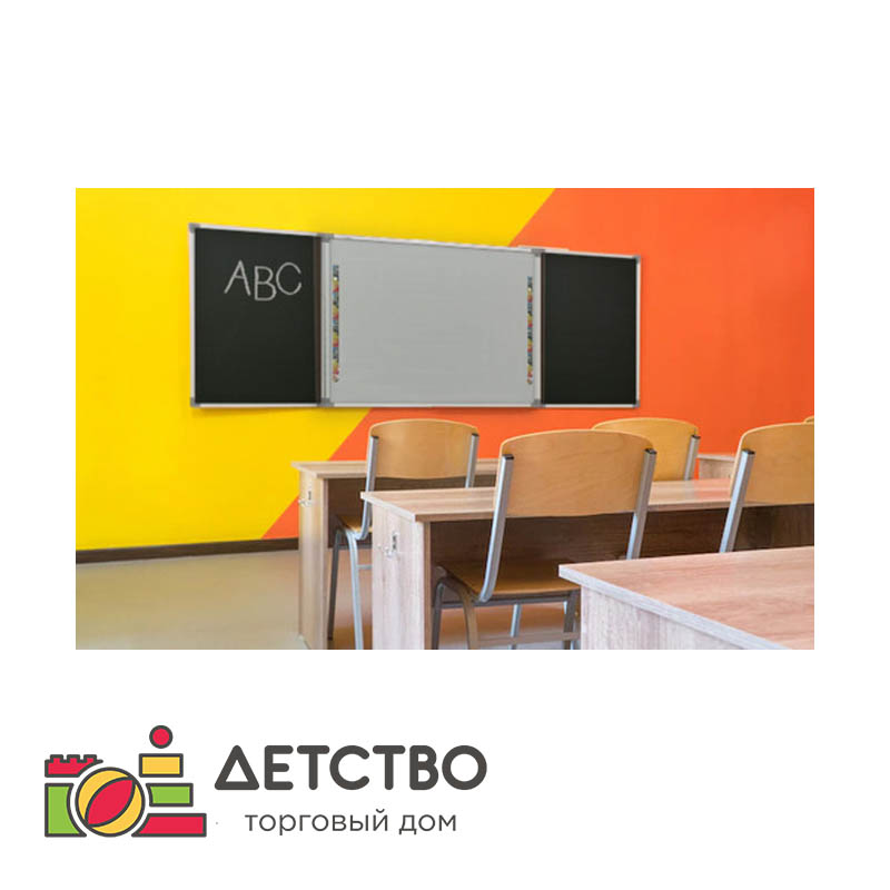 Интерактивная доска трёхсегментная с магнитно-меловыми боковыми элементами для детского сада