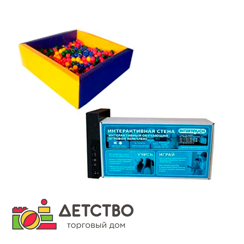 Комплект оборудования и ПО для организации сенсорной проекции на стене и организации сухого бассейна!Сборники приложений: "Детский мир", "Весёлые ребята", "Школа знайки", "Главный конструктор", "Чудо детка". Всего 15000 заданий для обучения и развития детей от 3‑х до 7 лет (арифметика, русский язык, чтение, счет, рисование, окружающий мир, моторика и конструирование, развитие речи, тренировка памяти). Изюминка комплекта — возможность организовать игровую зону для командной игры, несколько детей одновременно.