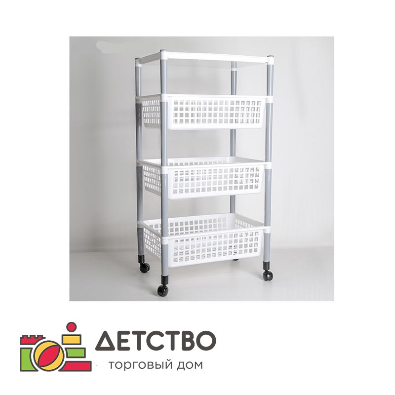 Этажерка напольная 4-х секционная, на колёсиках | ТД Детство
