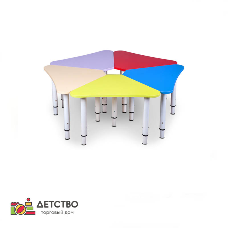 Стол состоит из 6 частей разных цветов на металлических опорах, которые устойчиво фиксируются на месте и не разъезжаются по сторонам. Такой стол позволяет сэкономить пространство, так как его можно собрать и разобрать при необходимости. Благодаря такому столу, можно объединить детей в команду, поручив им важное совместное задание.Со столом "Лепесток" от ТД "Детство" занятия вместе становятся веселее и удобнее!