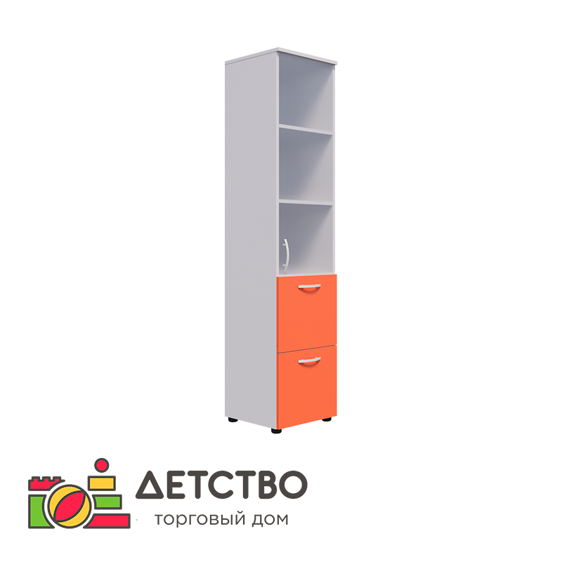 Этот шкаф-пенал состоит из двух частей. Сверху расположены три отделения, закрытые стеклянной дверцей, снизу — два ящика, выдвигающихся с помощью шариковых направляющих. На всех открывающихся элементах есть ручки-скобы, благодаря которым процесс открывания проходит легко и быстро, а поверхности не пачкаются. Этот шкаф можно использовать для документов, пособий, выносного инвентаря и т. д., поэтому он решит сразу несколько проблем по хранению в детском учреждении.Комплектация: шкаф — 1 шт., ручки-скобы — 3 шт., регулируемые опоры — 4 шт., задняя стенка — 1 шт., дверца — 1 шт., ящики — 2 шт., шариковые направляющие 4 шт., полки 4 шт.