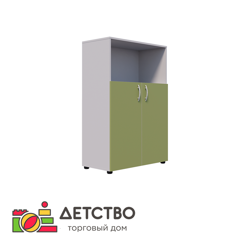 Полуоткрытый шкаф-стеллаж поможет вам навести порядок в ДОУ! На верхнюю полку можно положить вещи, которые часто используются, поэтому их нужно быстро найти, а на две другие полки, скрытые дверцами, следует складывать вещи, чтобы они не пылились и не портили внешний вид помещения.
