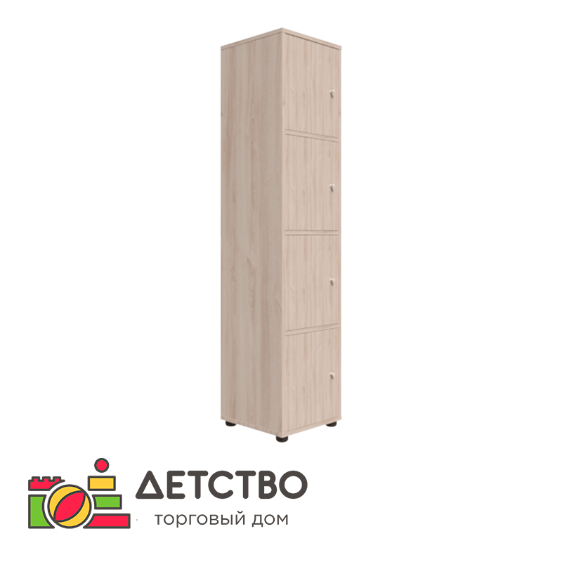 Представляем стеллаж с 4 ячейками (размеры 359×370×1607 мм) — компактное и функциональное решение для детских учреждений! Модель займет совсем немного места, однако станет удачным решением для организации пространства. Скройте визуальный шум за четырьмя закрытыми одностворчатыми отделениями. Сглаженные углы и прочная устойчивая конструкция обеспечат безопасность и долговечность беспрерывной эксплуатации. Регулируемые опоры позволяют стеллажу занять любое место в помещении, скорректируйте высоту опор, чтобы стеллаж устойчиво стоял на любом напольном покрытии.- Размеры (Ш×Г×В): 359×370×1607 мм — оптимальные габариты для организации вертикального пространства.