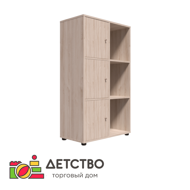 3 закрытых отделения с одностворчатыми дверями, которые надежно скрывают содержимое и помогают поддерживать порядок.
