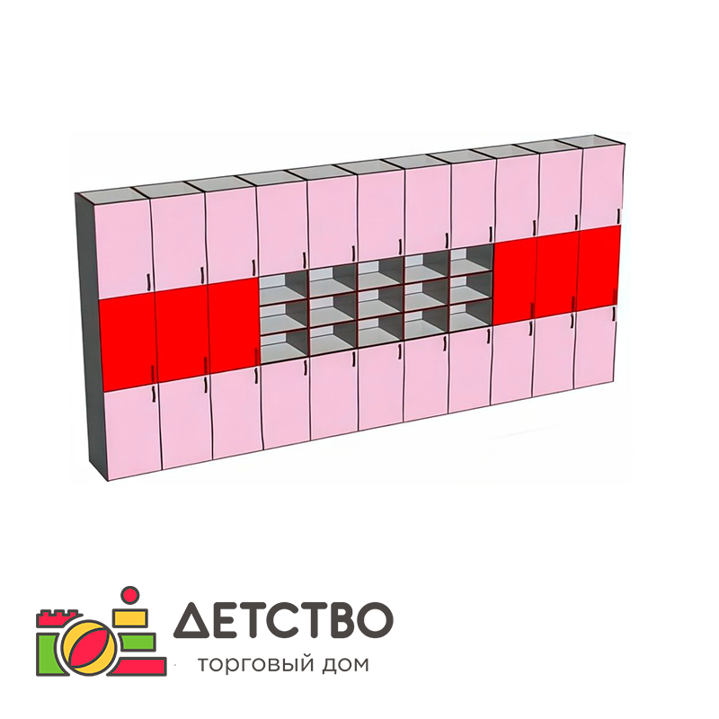 Этот комбинированный стеллаж станет отличным решением для детских садов, школ и других образовательных учреждений, обеспечивая порядок и доступность всех необходимых материалов для детей. Масштабная конструкция размерами 5600×500×2580 мм создает полноценную систему хранения для групп детского сада. Ширина 5600 мм позволяет разместить стеллаж вдоль свободной стены, используя обычно пустующее пространство. Глубина 500 мм вмещает коробки с игрушками, папки с детскими работами и крупные дидактические материалы. Высота 2580 мм доходит до потолка, обеспечивая максимальную вместительность при экономии площади. Комбинация открытых и закрытых секций помогает организовать пространство рационально: часто используемые предметы остаются в прямом доступе, а сезонные материалы и запасы хранятся за дверцами. Конструкция соответствует потребностям современных детских садов, где важны организация пространства и доступность материалов для самостоятельной деятельности детей.