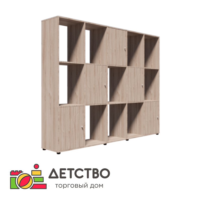 Где хранить документацию, методические пособия, спортивный инвентарь, технику и игрушки в детском саду? Конечно же, в этом замечательном стеллаже! Он состоит из 15 отделений — 10 открытых и 5 закрытых дверцей. Стеллаж и задние стенки закрытых отделений изготовлены из ЛДСП толщиной 16 мм, благодаря чему изделие выдержит высокие нагрузки, перепады температур, а также воздействие солнца и влаги.Комплектация: стеллаж — 1 шт., отделения — 15 шт., дверцы — 5 шт., ручки-кнопки — 5 шт., задние стенки — 5 шт., регулируемые опоры — 8 шт.