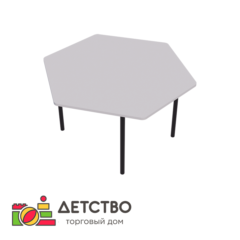 Этот стол — идеальное решение для обеденной зоны детского сада! Во-первых, за ним могут разместиться 6 детей, которые не будут друг другу мешать, ведь у этого стола необычная шестиугольная форма. Во-вторых, у стола безопасная конструкция — углы столешницы скруглены, поэтому о них не получится пораниться, а узкие металлические опоры дают большое пространство для ног, благодаря чему особенно активные дети могут ими размахивать, не ударяясь о ножки. И наконец, стол выполнен из прочного ЛДСП толщиной 22 миллиметра, поэтому он не сломается под тяжестью тарелок с едой и детских рук, которые так часто опираются о стол.Комплектация: столешница, труба профильная 25х25 мм, труба круглая 40 мм