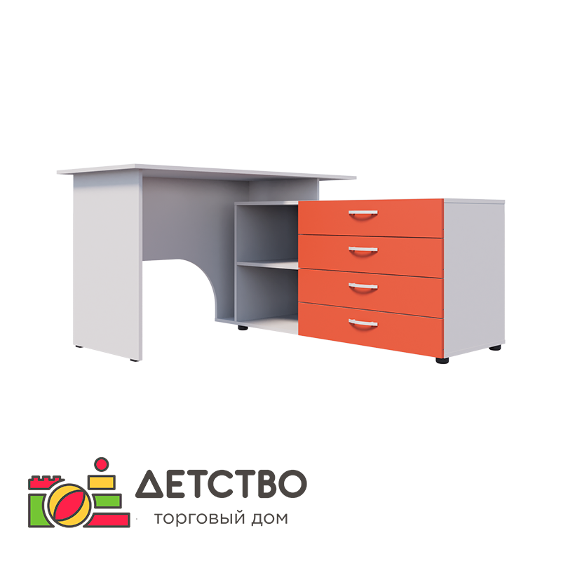 Вы когда-нибудь видели такую большую тумбу? Кажется, что по ширине она может соревноваться с самим столом! У неё есть два открытых отделения в левой части и четыре широких вместительных ящика, которые выдвигаются благодаря шариковым направляющим. Кажется, в эту тумбу можно сложить целую Вселенную! Стол тоже не уступает по размерам, его длина — 140 сантиметров, а высота немного выше стандартной, поэтому за ним будет особенно удобно сидеть высоким людям — воспитателям, заведующим или директору.Комплектация: столешница — 1 шт., боковые опоры — 2 шт., задняя стенка — 1 шт., подпятники — 4 шт., тумба — 1 шт., полка — 1 шт., ящики — 4 шт., ручки-скобы — 4 шт., шариковые направляющие — 8 шт., регулируемые опоры — 4 шт.