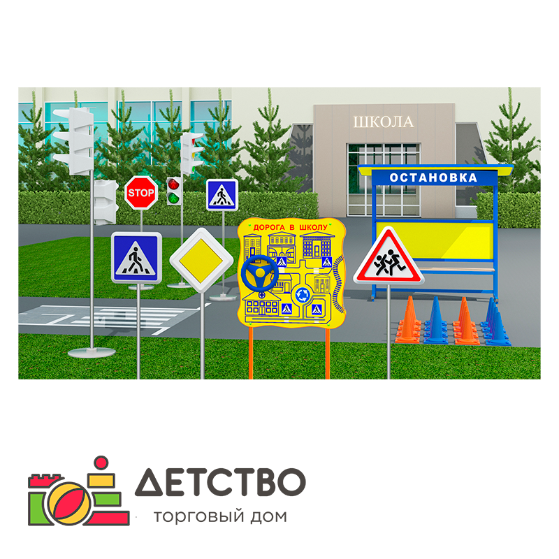АВТОГОРОДОК УНИВЕРСАЛЬНЫЙ КОМПЛЕКТ предназначен для организации игровой и образовательной деятельности в сфере формирования культуры поведения дошкольников на дорогах и улицах, ориентирования в дорожно транспортной ситуации, дорожных знаках, сигналах светофора, разметке дороги.Комплектация: набор светофоров «Пешеходный переход»; остановка; комплект знаков — 4 шт.; набор конусов — 12 шт.; 1 стенд обучающий; жезл регулировщика; имитация проезжей части.