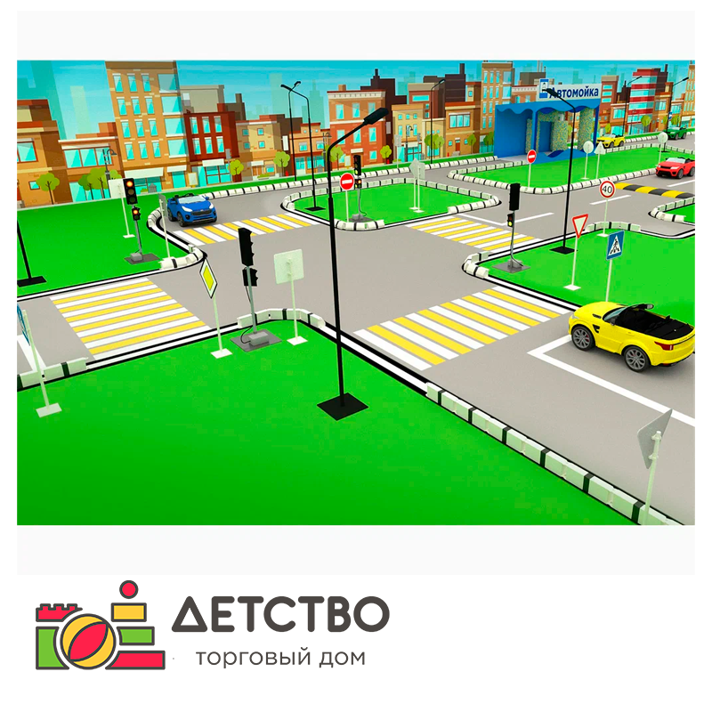 Данный комплект предназначен для организации досуга, обучения и развития детей от 3 до 14 лет. Дорожное полотно с разметкой, светофоры, которые переключают сигналы автоматически, работая в комплексе друг с другом, знаки дорожного движения, автозаправка и, конечно, автомобили подарят ощущения реальности, помогут детям почувствовать себя взрослыми.Комплектация: имитация проезжей части — 1 шт.; светофор — 4 шт.; комплект дорожных знаков с креплением на стойке — 15 шт.; комплект универсальных стоек с плакатами «Знакомимся с дорогой» — 10 шт.; модуль сборно-разборный «АЗС» — 1 шт.; электромобиль "Джип" — 3 шт.; методическое пособие — 1 шт.