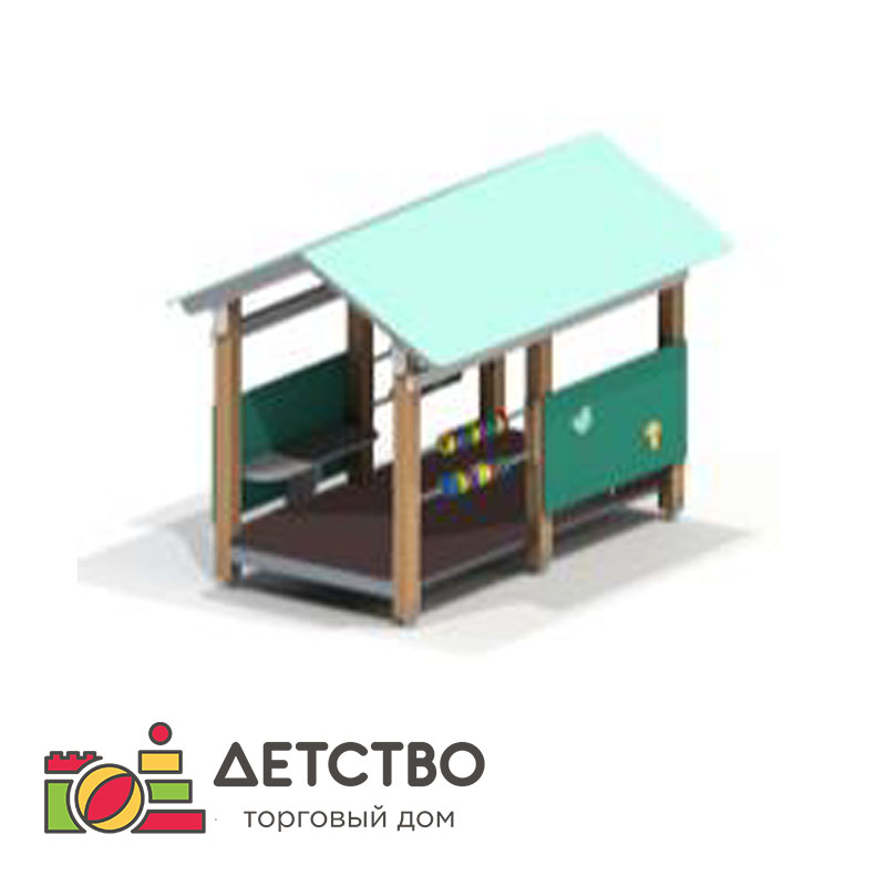 Беседка для малышей со счётами и яркими стенками, а внутри со скамейками. Пол приподнят над землёй для более длительного срока службы. Есть несколько цветовых решений, уточняйте, пожалуйста, у менеджеров.Преимущества: